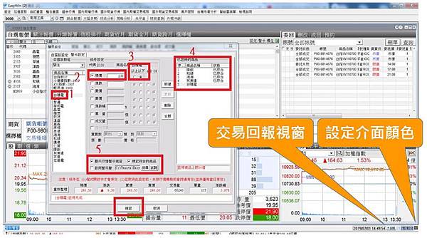 6.右下方有交易回報跟畫面顏色設定