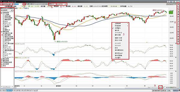 4.在您要的技術指標前點一下,會出現勾勾,而右方主圖下面也會有技術指標