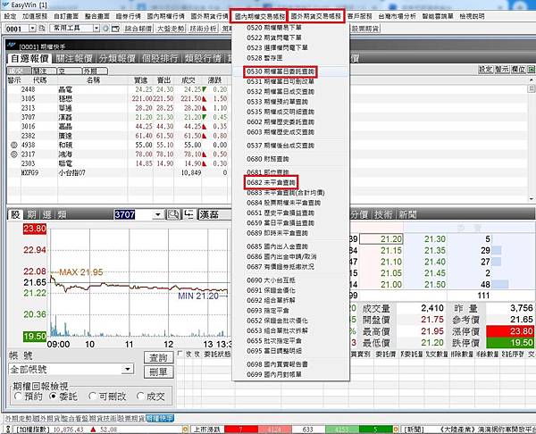 找到您的[委託單]及[平倉查詢],可直接做刪改動作